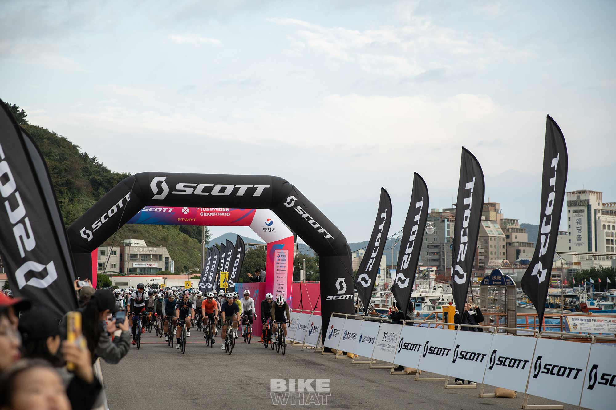 11월 8월 토요일, 경남 통영시에서 통영시사이클연맹이 주최하고, XCWORKS가 주관한 ‘2025 스캇통영그란폰도’가 개최됐다. 스캇노스아시아가 타이틀 스폰서로 참여한 이번 행사에는 2500여 명의 라이더가 참가해서 해안도로 위주로 편성된 97㎞ 코스를 달렸다.