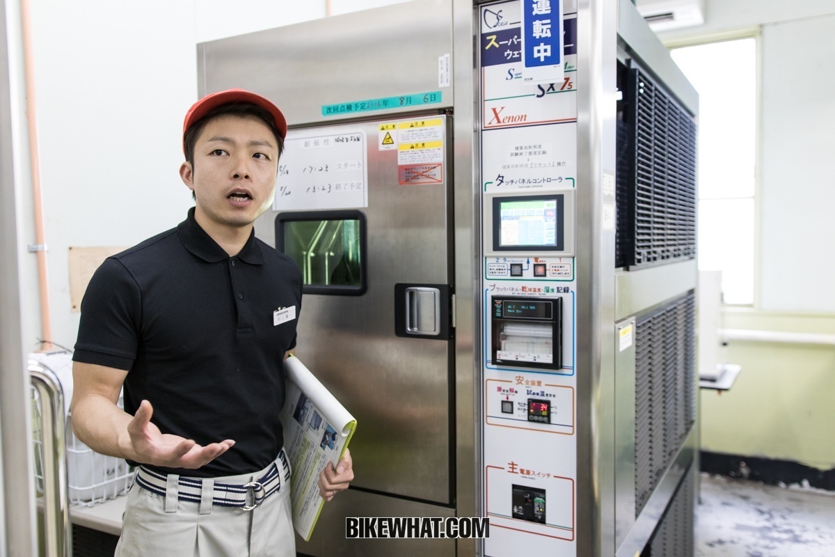 무라카미 씨는 “이곳은 시간의 방입니다. 이 시험실에서는 시간이 지남에 따라 자전거 부품이 얼마나 부식되고 변색되는지, 그리고 계절에 따라 변하는 기온에 얼마나 지쳐 가는지 테스트합니다”라고 설명한다.