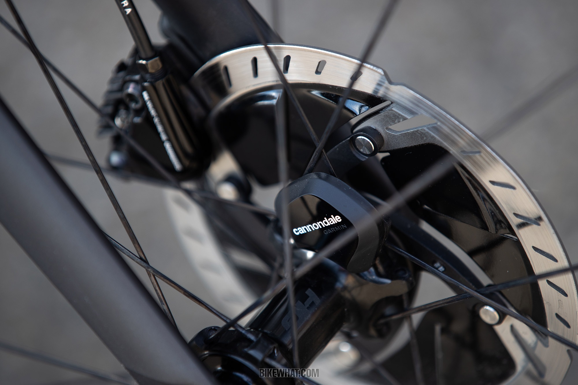 가민과 협업으로 만든 휠센서. 단순하게 속도만 측정하는 센서가 아니라 메모리 기능이 있어서 900시간 동안의 라이딩 거리, 시간, 속도, 페이스 등을 기록한다. 안드로이드/iOS용 캐논데일앱과 연동해 사용할 수 있으며 앱을 사용하면 각 부품의 사용시간과 거리를 통해 메인터넌스 또는 교체 주기를 파악할 수 있다. 캐논데일 휠센서는 ANT+ 또는 저전력으로 작동하는 블루투스 LE로 스마트폰과 통신하며, 가민이나 와후 같은 사이클링 컴퓨터와도 완벽하게 호환된다. 캐논데일 앱을 사용하는 라이더들이 라이딩을 통해서 얼마나 CO2를 절감했는지도 나타낸다고. ⓒDavid Schultheiss