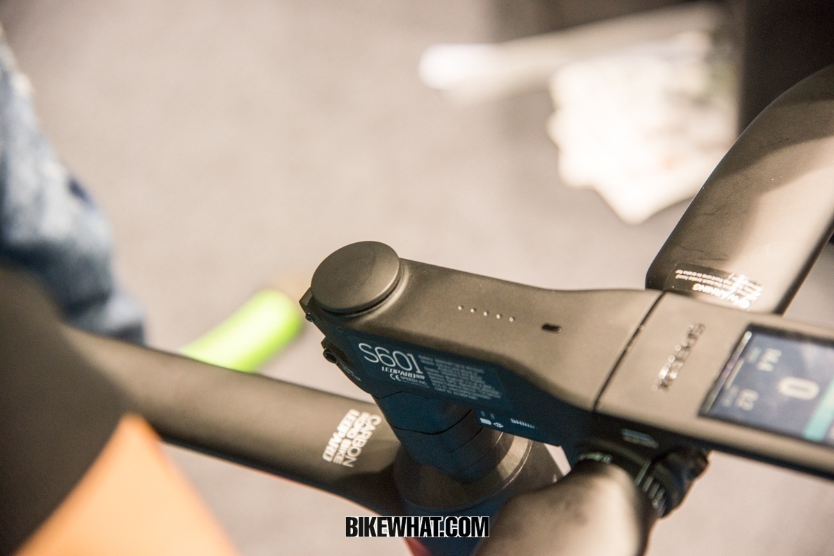 전시장에서 가장 눈에 띄는 자전거를 꼽으라면 바로 서벨로의 트라이애슬론 바이크 P5X다. UCI 장비규정을 속시원하게 무시한 디자인이라 당황스럽기도 하지만, UCI 규정과 무관한 아이언맨과 같은 장거리 트라이애슬론용 자전거다. TRP에서 새롭게 선보인 TT용 디스크브레이크(케이블식 유압디스크브레이크 캘리퍼) 달아 제동성능을 높였다. 앞뒤 휠 모두 12㎜ 쓰루엑슬을 사용해 휠 안정성을 높였고, 콕핏 뒤로 보급품 주머니를 달아 편의성도 고려했다. 다운튜브 하단 BB셸 앞에 공구와 튜브 등을 보관할 수 있는 수납공간이 있다.