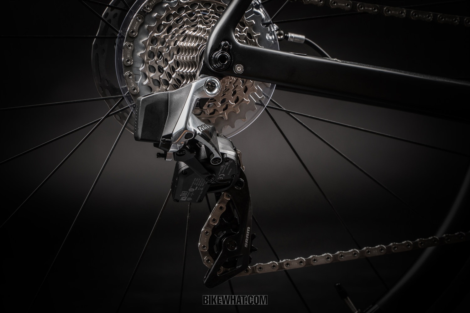 스컬트라와 리액토 디스크 9000-E에는 스램의 무선 전동 변속 그룹셋인 레드 이탭 AXS이 쓰였다. 사진은 50-37T 크랭크 세트.