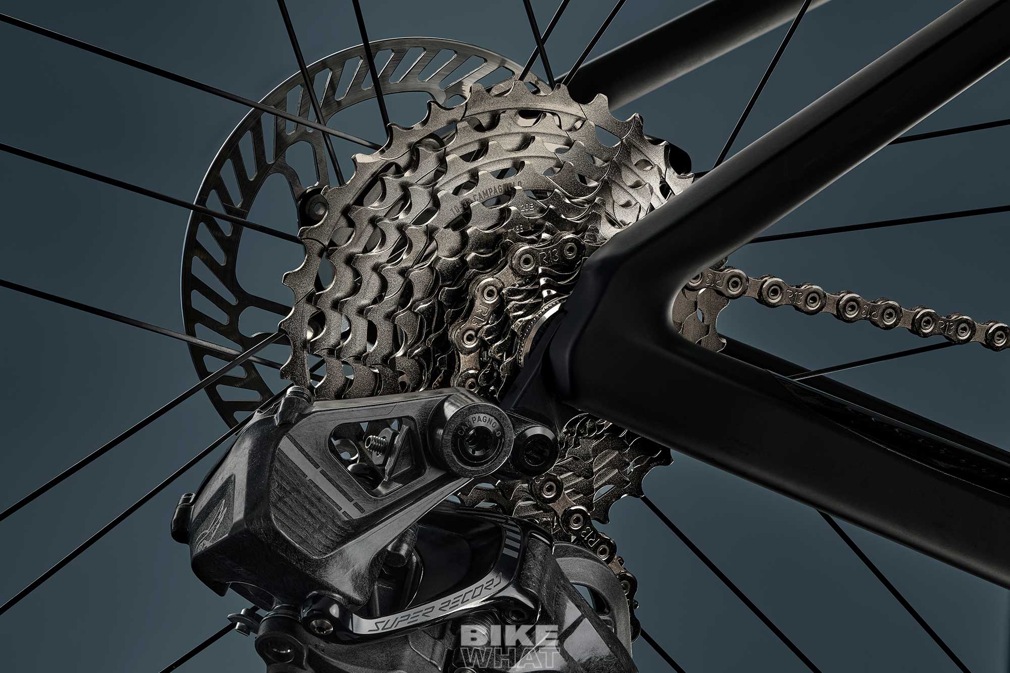 슈퍼 레코드 13 로드 그룹셋이는 총 7가지 체인링 옵션과 10T로 시작하는 카세트 2개와 11T로 시작하는 2개 카세트까지 총 4개의 카세트 스프라켓 옵션이 제공된다. 기존의 슈퍼 레코드 12 WRL 대비 체인링 옵션이 하나 늘었고 스프라켓이 한 장이 더해져서 촘촘하고 넓은 기어비를 만들어낸다.