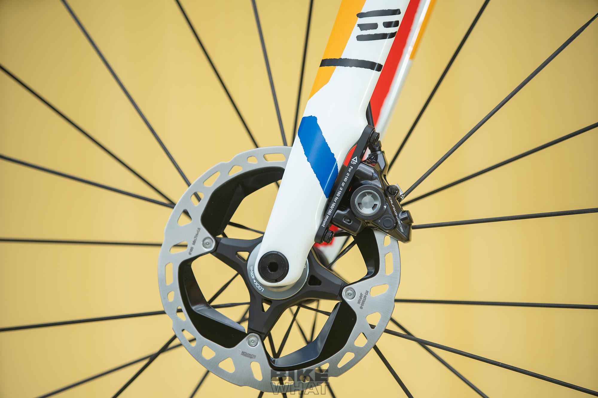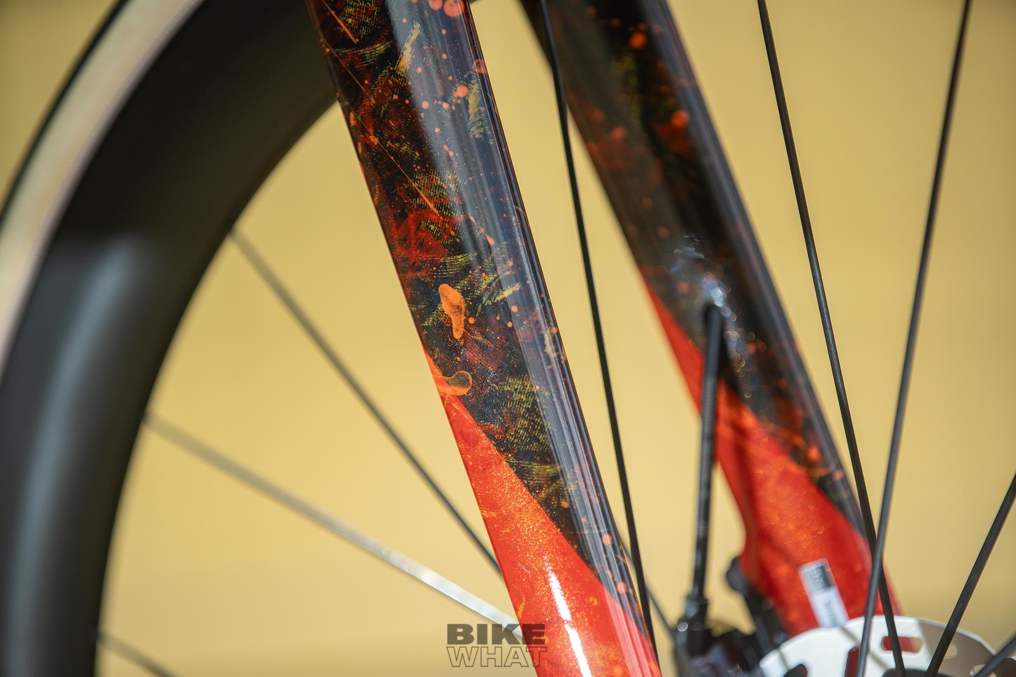 포크에서도 7%의 감량을 이뤘다. 하중이 집중되는 끝부분을 속이 완전히 빈 할로우 구조로 완성해서, 강성을 최적화하는 동시에 경량화를 이끌어냈다. 포크는 라이딩 시 노면으로부터 오는 충격을 가장 먼저 받는 부분이기 때문에 내구성 확보가 중요한데, 위아위스는 래디칼 2의 포크 중심부에 기둥 역할을 하는 임팩트 스플라인을 설치하고 정밀한 카본 패턴 설계를 더해서 강성과 내구성을 크게 향상시켰다. ISO 내구 테스트 기준의 3배에 달하는 30만 회의 반복 테스트를 거쳐도 변위량이 일정하게 유지되는 것으로 나타났다.