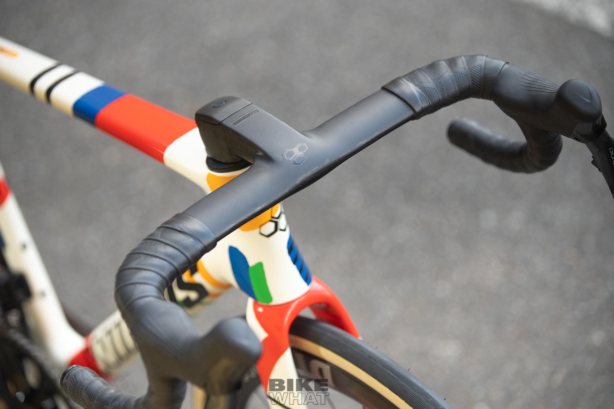 일체형 핸들바와 시트포스트도 내부 구조를 최적화하는 방법으로 10g과 20g을 덜어냈다. 프레임과 포크에서 총 150g을 줄였고, 일체형 핸들바와 시트포스트에서 30g을 추가로 덜어내서 감량분은 총 180g에 달한다.