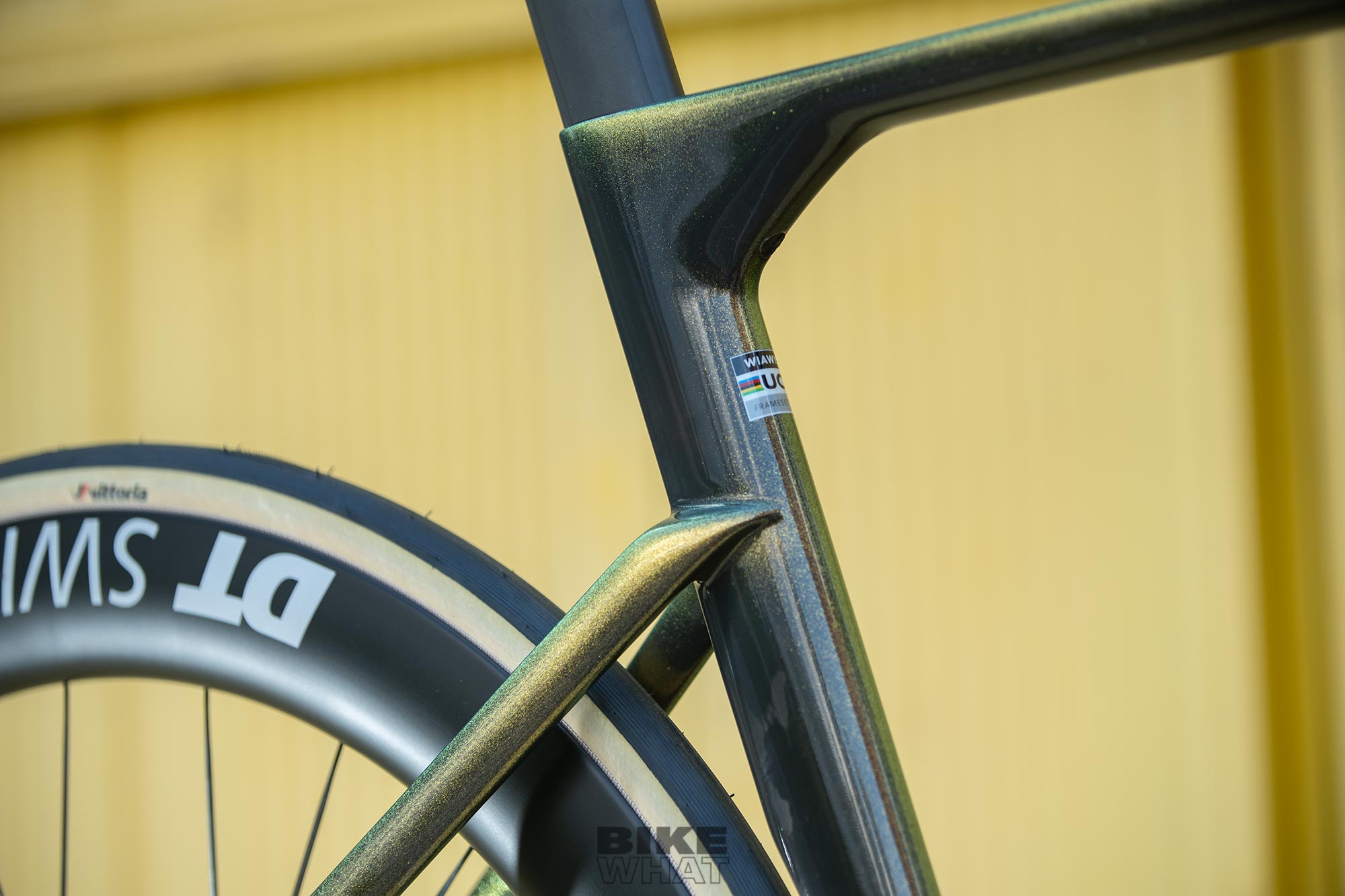스테이의 크기를 줄이면서 단순한 형태로 만든 이유는 프레임의 전면부에 비해서 공기역학적인 부분에 영향이 적기 때문이다. 크기가 작아진 스테이 디자인과 경량 구조는 초경량 자전거 벤터의 데이터를 활용한 것인데, 위아위스 연구개발팀에 따르면 프레임 뒤 삼각에서만 26%의 경량화를 이뤘다고.