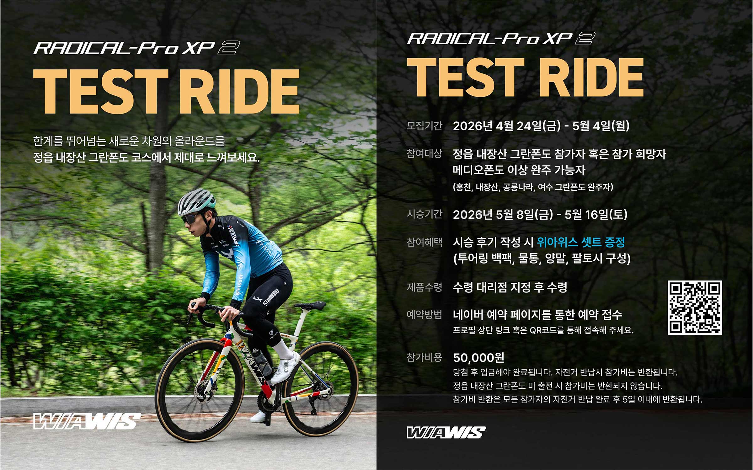 모집 기간은 4월 24일부터 5월 4일까지이며, 당첨자는 5월 8일 신청 시 지정한 위아위스 대리점에서 자전거를 수령해 그란폰도가 개최되는 5월 16일까지 자유롭게 래디칼 프로 XP 2를 시승해 볼 수 있다.